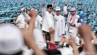 Calon presiden (capres) nomor urut 02 Prabowo Subianto disambut meriah dalam Reuni Akbar Mujahid 212 di Monas, Jakarta Pusat.